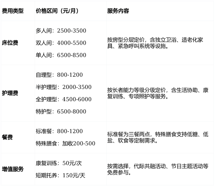 提示:具体费用需结合长者身体状况及房型评估,拨打400-996-7750获取个性化报价。