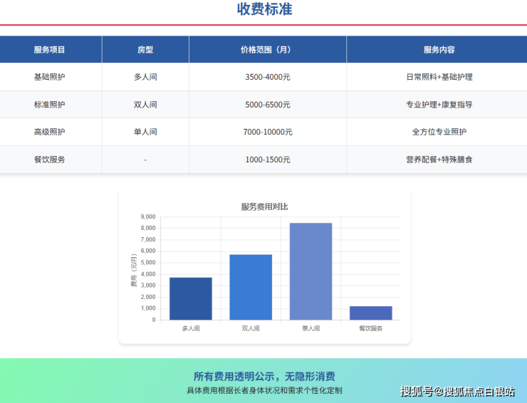 单人间:7000-10000元/月(含独立卫浴、电动护理床)