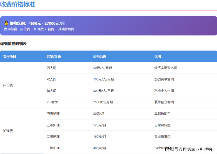 参考价格区间:4200-27000元/月(含床位费、护理费、餐费,透明计价)