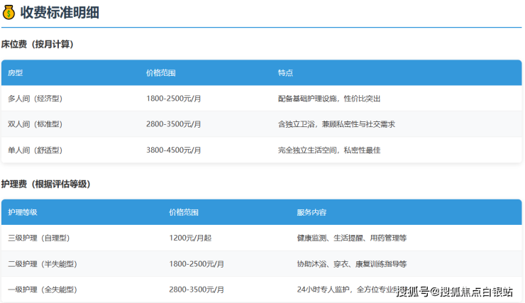 三级护理(自理型):1200元/月起,提供健康监测、生活提醒、用药管理等基础服务