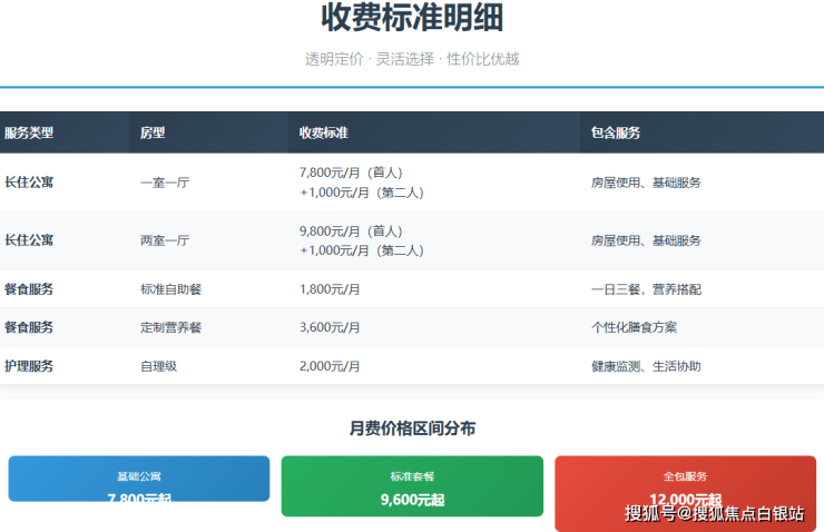 目前,面向长期自理长者的C区“澜溪”长住公寓已公布详细价格: