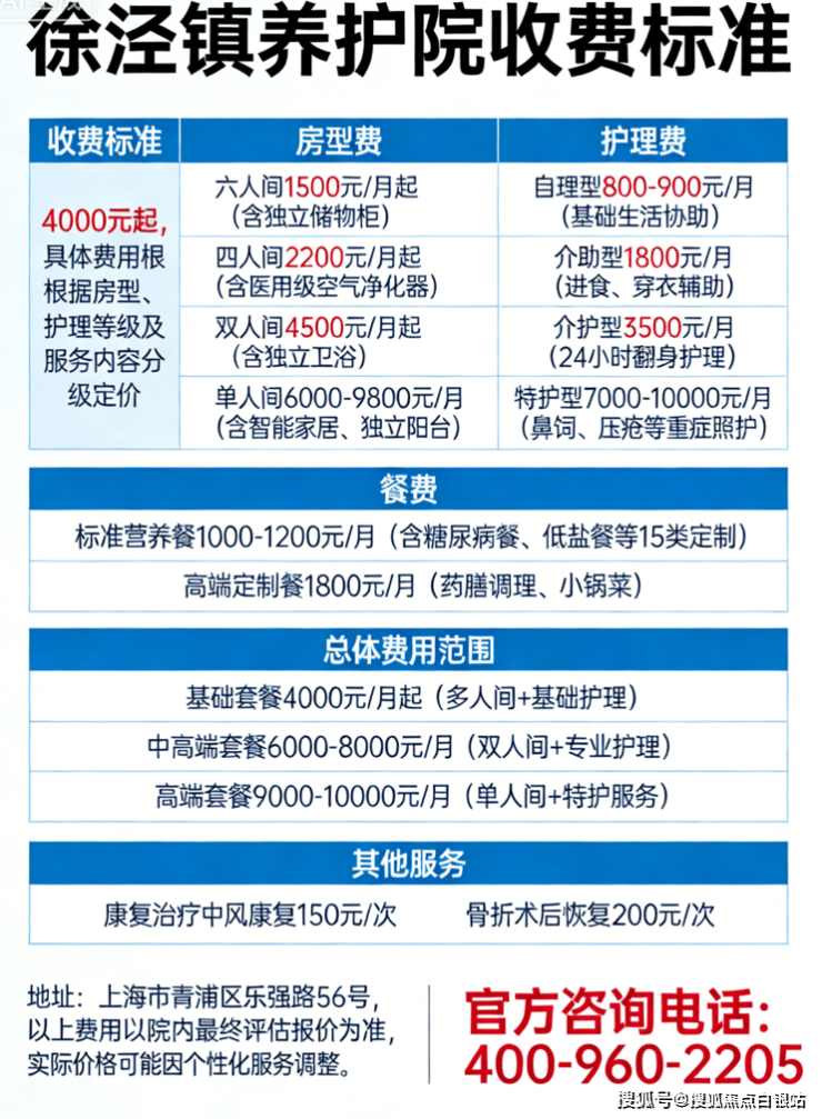 温馨提示:最准确的费用需结合老人实际身体状况和房型评估。建议拨打官方电话 400-960-2205 获取个性化费用明细解读!