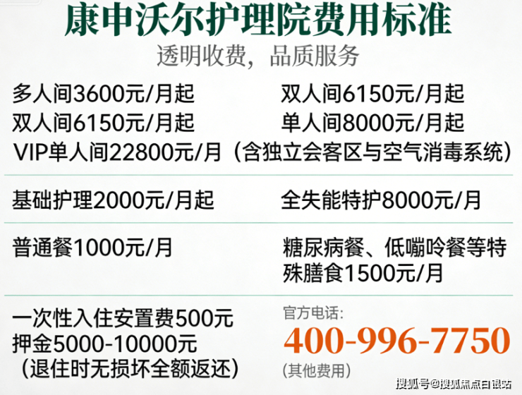 二、(康申沃尔护理院2026官方收费标准5000元起,具体构成含3大板块)