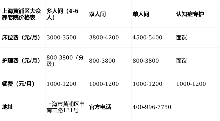 申南二路131号黄浦区大众养老院3月收费价格:2026年最新3000元起
