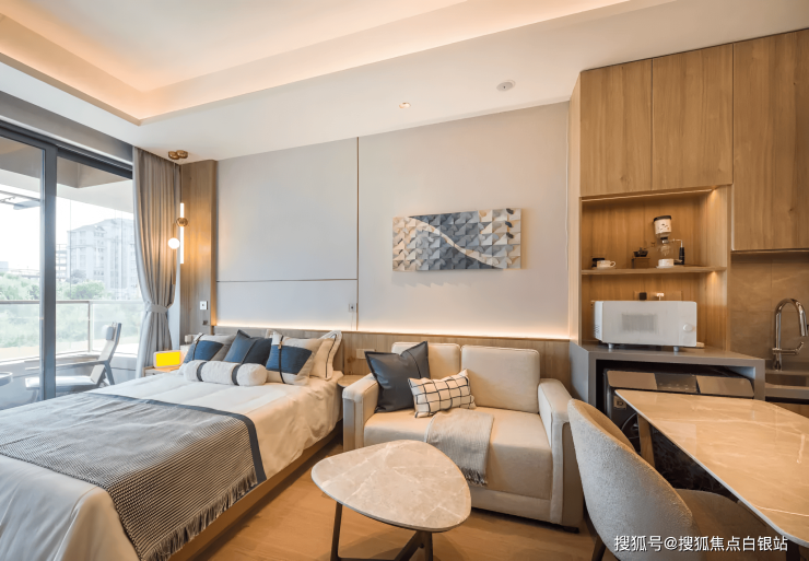 社区规划267套独立养老公寓,面积从36平方米到70平方米不等,内部装修融合现代美学与人体工程学:
