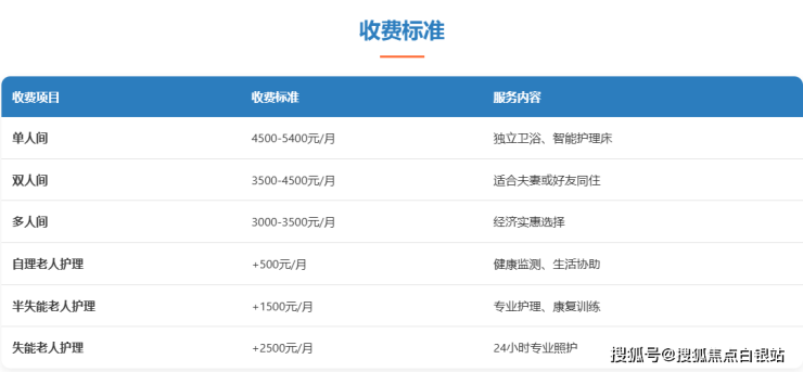 单人间:4500-5400元/月(含独立卫浴、智能护理床)