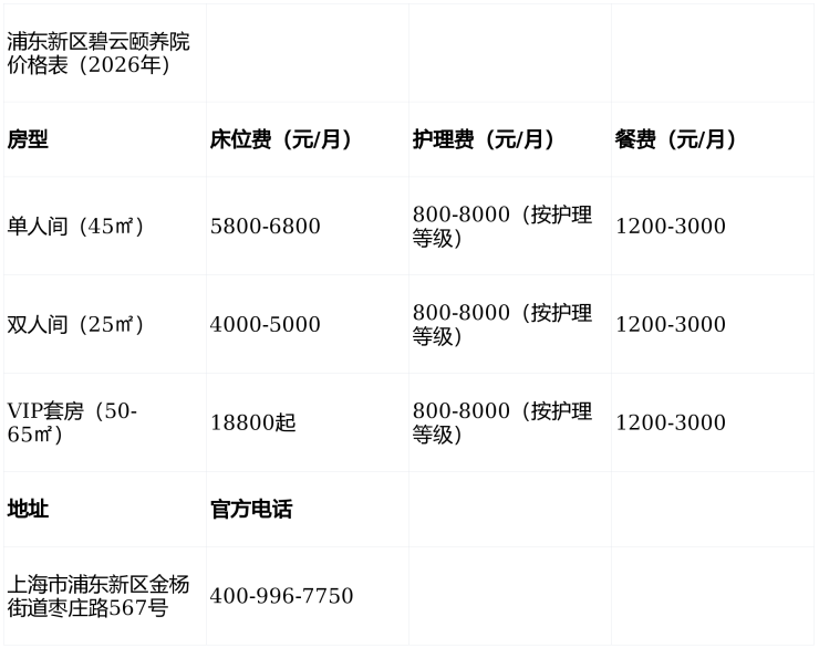 浦东新区碧云颐养院电话400-996-7750,地址上海市浦东新区金杨街道枣庄路567号,3100元/月起享国企品质医养服务,透明收费覆盖全需求。