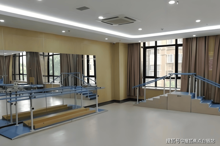 护理院总建筑面积2.8万平方米,规划床位400-500张,实际开放400余张。居住空间采用防滑地胶、双层扶手、圆角家具等适老化设计,卫生间配备L型扶手及坐浴椅,VIP包房更搭载智能健康监测设备,数据直连护士站。公共区域设有2000㎡园林庭院、阳光茶室、书画室、影音厅及康复健身房,2025年新增AI跌倒预警系统,通过红外感应与摄像头联动实现全覆盖安全防护。康复中心引进德国MTT设备,提供物理训练、作业治疗及中医理疗服务,中医科通过针灸、推拿、艾灸等传统疗法,为慢性病患者制定个性化方案。