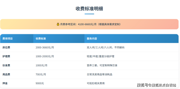 价格区间:4100-6660元/月(根据房型与护理等级分级定价)