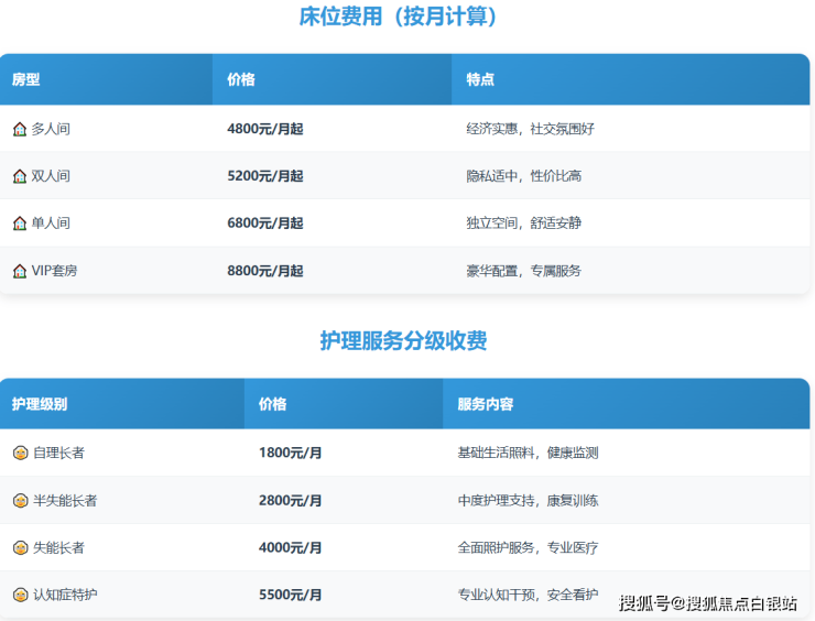 自理长者:1800元/月(基础生活照料)
