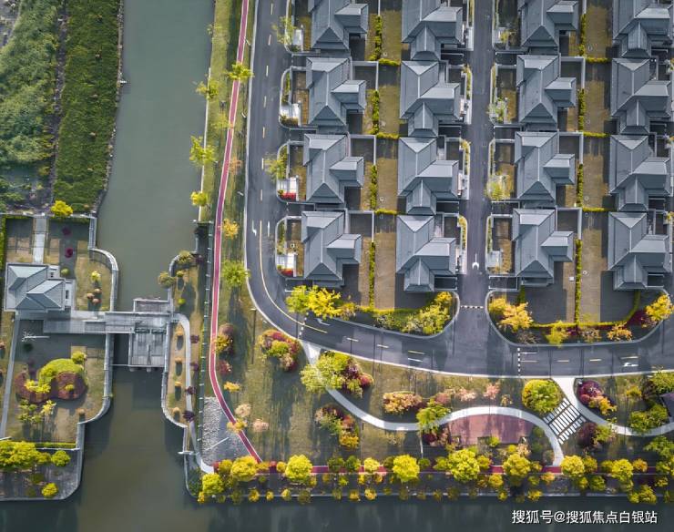 社区总占地达226亩,但容积率仅0.5,绿化率高达45%,真正做到了建筑点缀在园林之中。居住产品分为花园洋房和合院别墅两种形态: