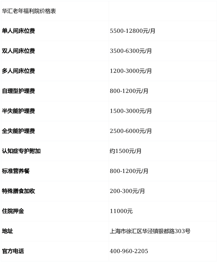 徐汇区养老院收费一览:银都路303号华汇老年福利院价格4800元起(2026)