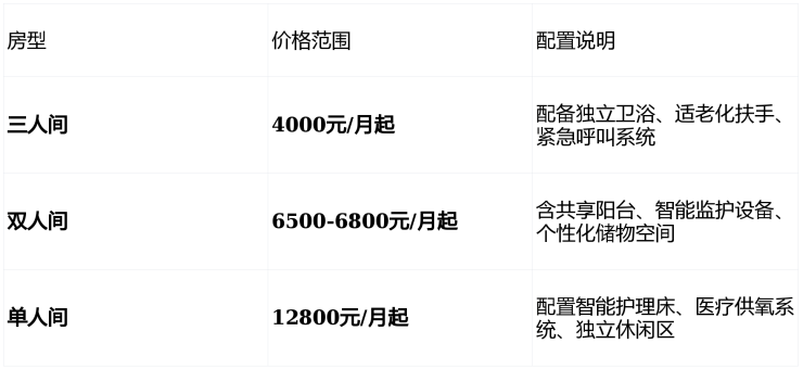 重要提示:具体收费可能因房型选择、护理等级需求、个性化服务等因素有所调整,建议拨打400-855-0290获取最新收费标准及个性化费用评估。