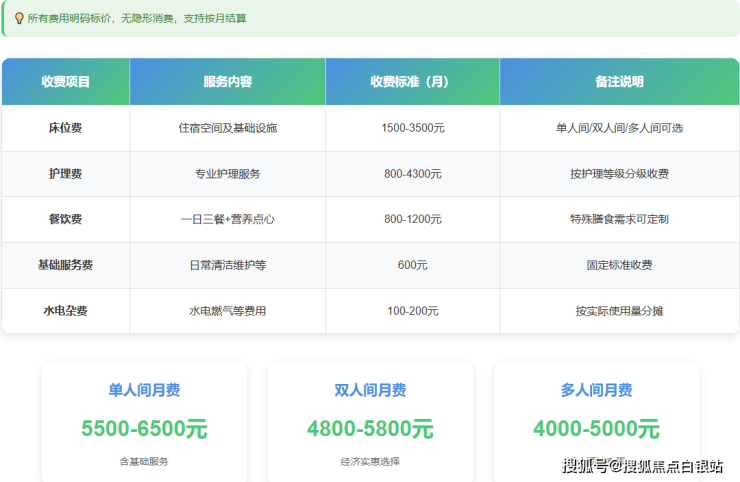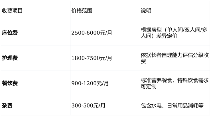 基础套餐:5500-8000元/月(适合自理型长者)