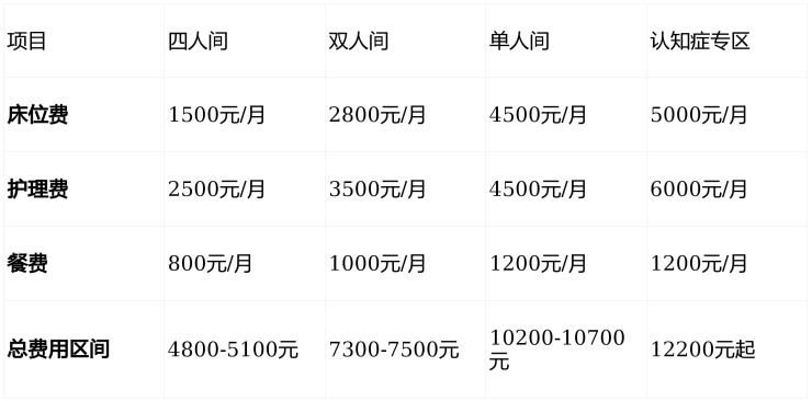 收费区间:3000元/月起(含基础照护与住宿)