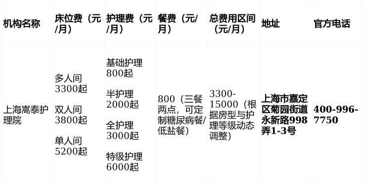 2026上海嵩泰护理院地址:嘉定永新路3300元起,专业照护热线速览