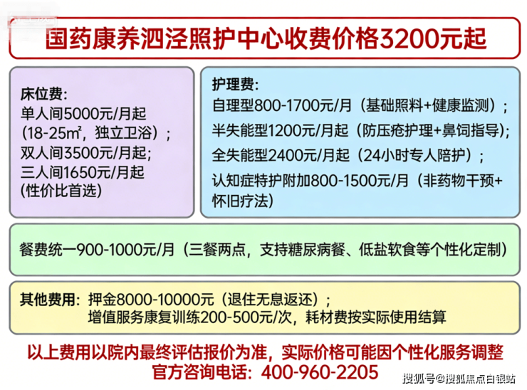 一、国药康养泗泾照护中心收费多少?一条一条给你拆开看!