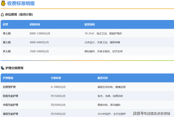重要提示:以上费用为基于市场信息的参考区间,具体费用需根据长者入住前的健康状况综合评估确定。最准确的信息请通过官方电话400-855-0290咨询。