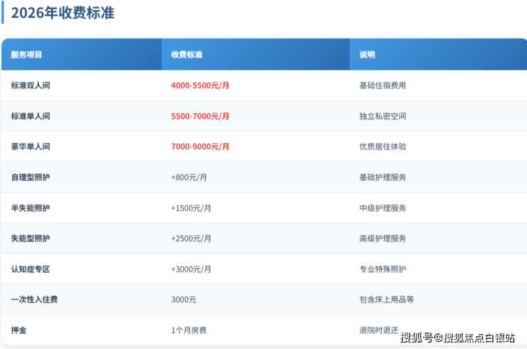 缴纳标准:根据所选房型和护理等级确定具体金额