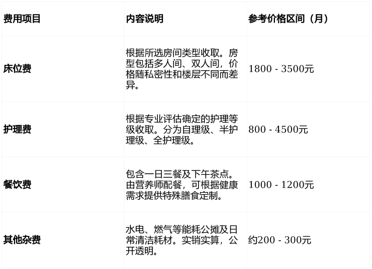 收费区间:4000-6000元/月(按护理等级与房型差异化定价)