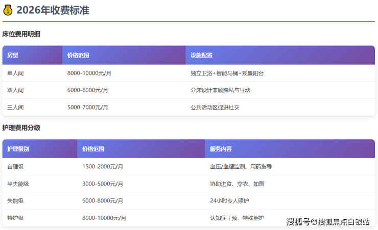 重要提醒:本文提供的价格信息仅供参考,具体收费以院内实际报价为准。建议在决定入住前,亲自到院考察并与工作人员详细沟通。