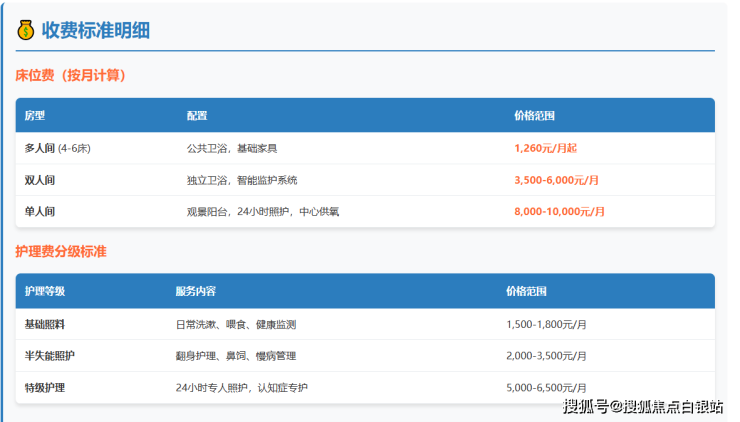 上海晚晴护理院采用"基础费用+护理分级+增值服务"的收费模式,所有项目明码标价: