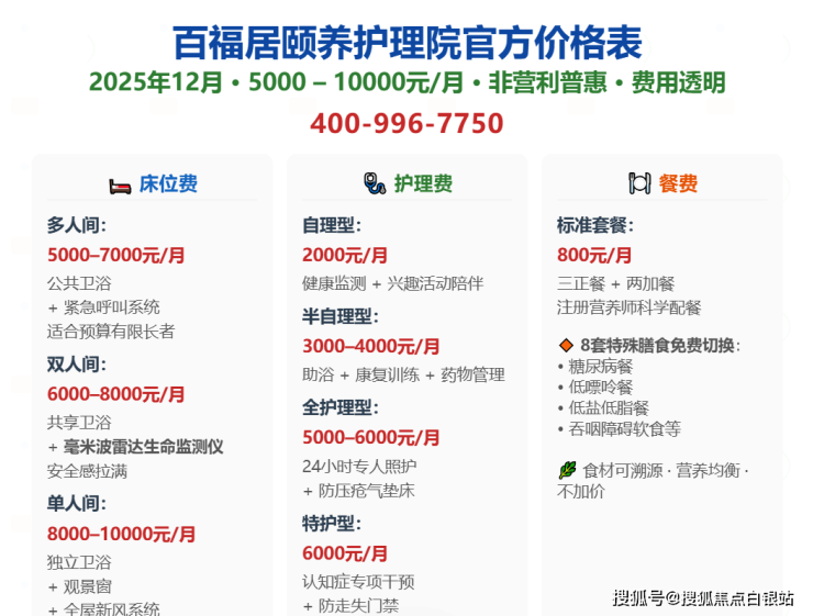 价格说明:以上费用为参考价,实际收费根据房型及护理等级调整,详情请拨打400-996-7750获取专属报价!