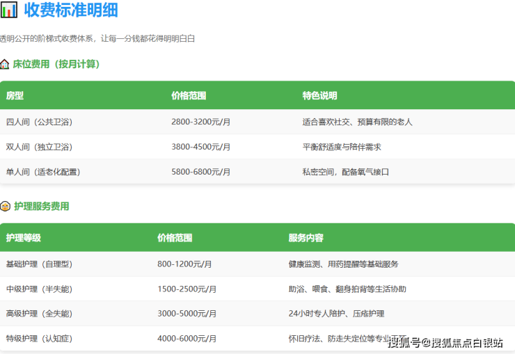 逸仙第二敬老院采用公开、透明的阶梯式收费标准,所有费用清晰列明。以下是基于公开信息的2026年参考收费明细(具体以院内实际评估报价为准):