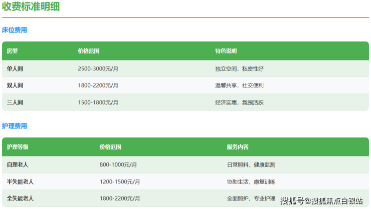 泾惠敬老院采用复合定价模式,月度总费用主要由以下三部分构成: