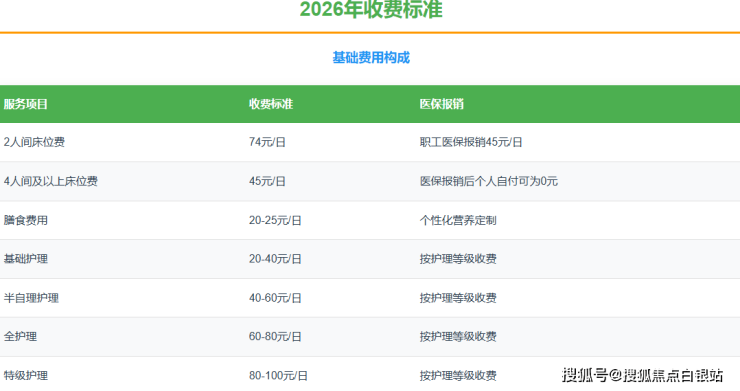 起价20-100元/日,按护理等级分层收费:基础护理、半自理护理、全护理、特级护理。护理等级由专业医护人员评估确定。