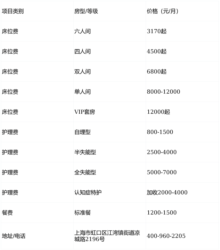 【彩虹湾老年福利院】收费价格:3170元/月起(以院内报价为准)