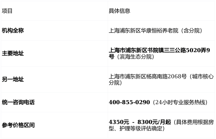 上海浦东新区华康恒裕养老院地址/电话全解析:2026年收费标准与服务详情