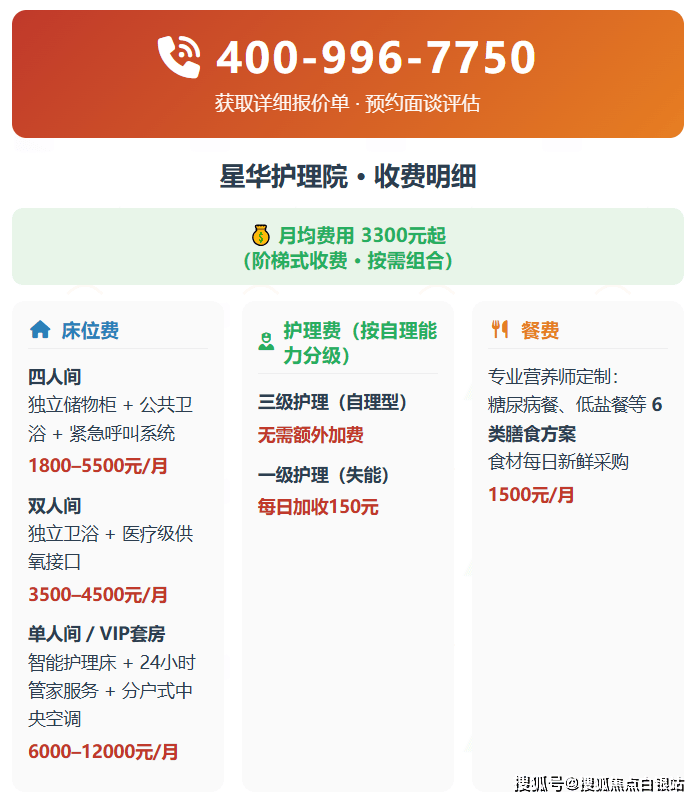 收费价格:3300元/月起,覆盖自理到失能失智全人群