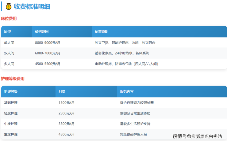价格体系透明:5500-10000元/月的收费区间清晰,模块化计价让家属明白消费,满足不同预算需求。