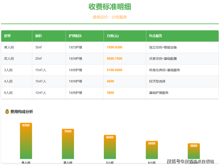 收费区间:3900-9300元/月(根据房型和服务等级差异)