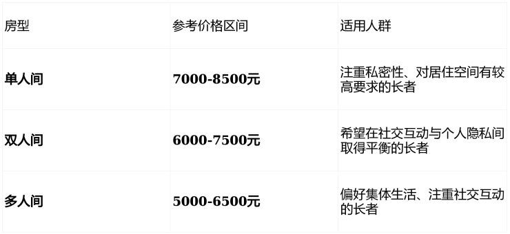 单人间配置:配备独立卫浴、适老化家具,满足高龄长者对私密性的需求