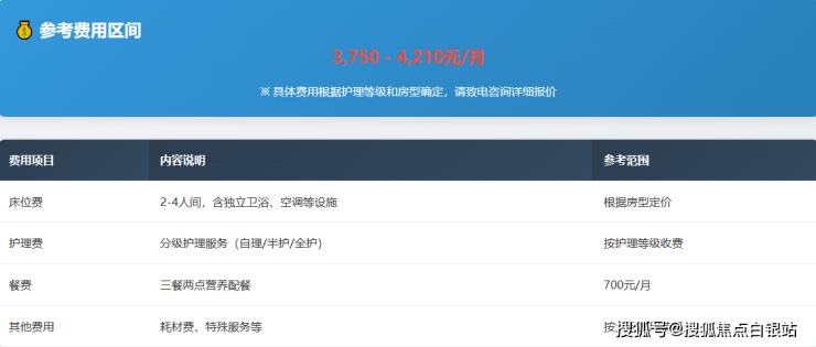 收费标准:3750元/月起(含基础服务+分级照护)