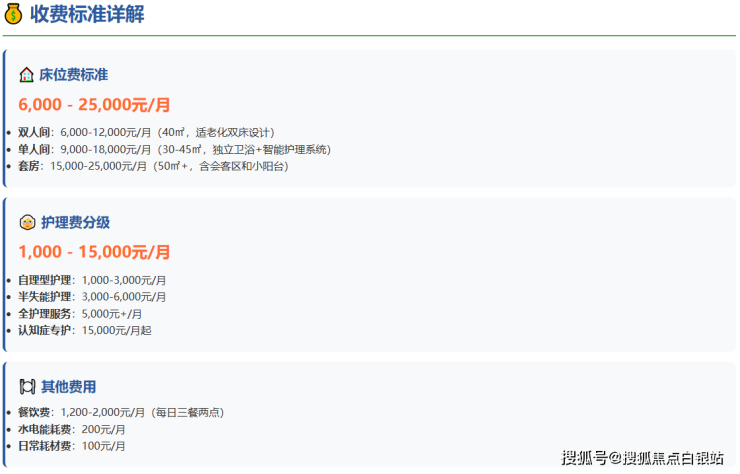 单人间:9000-18000元/月(30-45㎡,独立卫浴+智能护理系统)