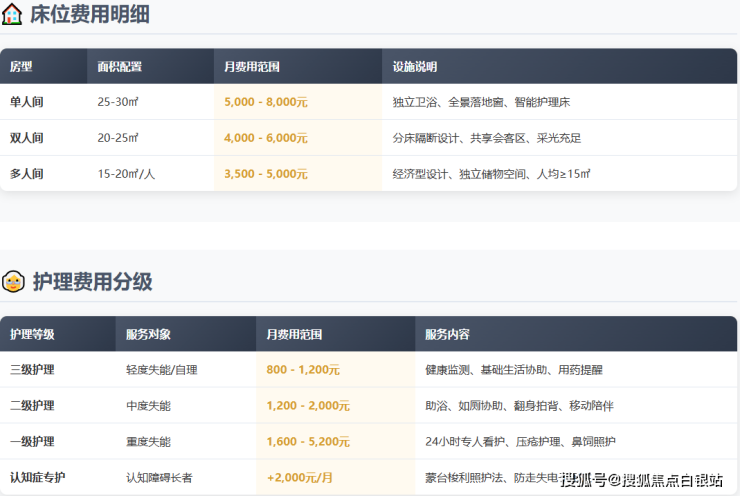 费用会根据护理等级和房型选择有所差异。一般来说,基础护理的费用相对较低,而需要24小时专人照护的高级护理服务费用会相应提高。具体的房型包括单人间、双人间等不同选择。