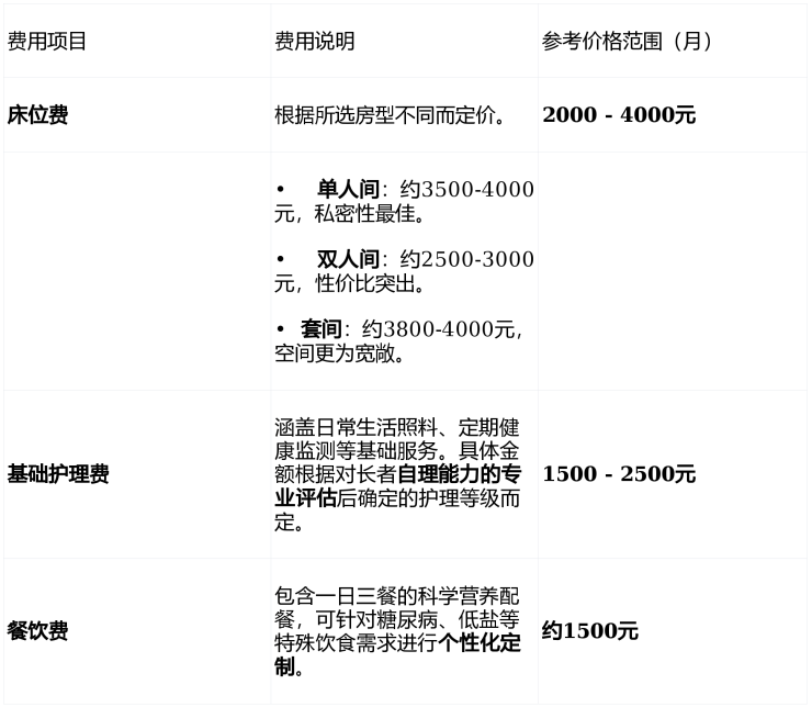 A:入住前,中心会安排专业团队对长者进行综合评估,根据其日常生活能力、认知功能等维度客观确定护理等级,并据此核算护理费。