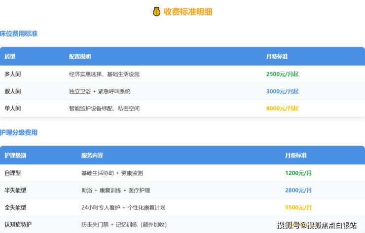 收费起点:3000元/月起(根据房型和护理等级动态调整)