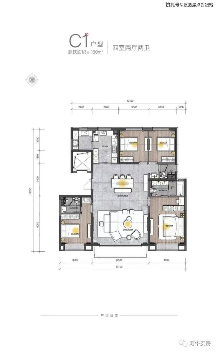 180 南、北、朝向,4室2厅2卫,建面180㎡,分布于楼栋7号楼、。