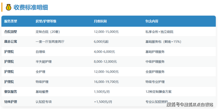 中信·崇明信澜天地采用"基础套餐+增值服务"的收费模式,月均费用6000-15000元,满足不同经济条件长者的需求。