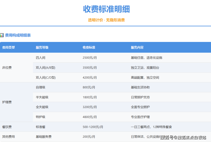 最低组合费用:四人间+自理护理+基础餐饮=4134元/月起