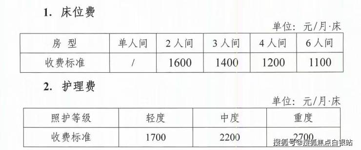 ①基础服务费:3000元/月起,含三餐两点(普通膳食)、基础健康监测及每周2次文体活动。