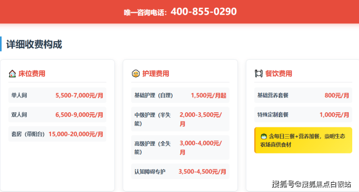床位费:这是养老院的基础住宿费用,根据房型不同有所差异: