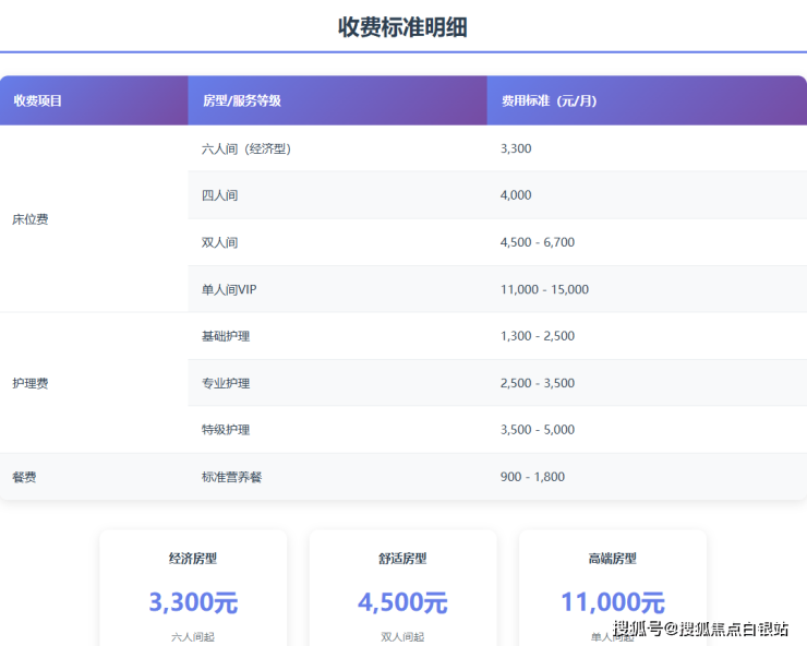 价格区间:3300-17000元/月(按房型与护理等级分级)
