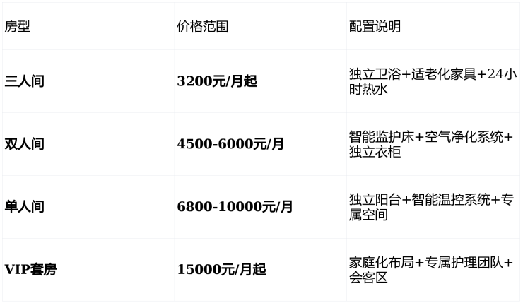 费用说明:最准确的费用需结合老人实际身体状况、护理需求和房型进行综合评估。建议拨打400-855-0290获取个性化费用明细解读。