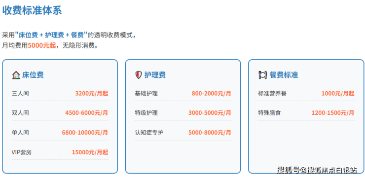 特殊膳食:1500元/月(糖尿病低GI餐、高血压低盐餐、吞咽困难餐等)