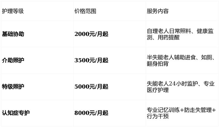 护理院独创**"基础-介助-介护-专护"四级照护体系**,覆盖不同需求层次的长者: